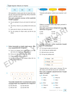 8. Dokuz basamaklı en büyük doğal sayının oku-