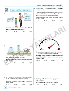 iki katı, çocuk yolcu sayısının ise üç katıdır. 6. Ilayda kg’ı 62 TL olan muzdan 2 kg alıp manava
