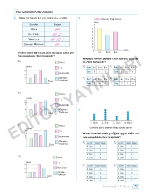 5. Tablo: Bir Günde En Çok Satılan Ev Eşyaları 6. Grafik: Okunan Kitap Sayısı
