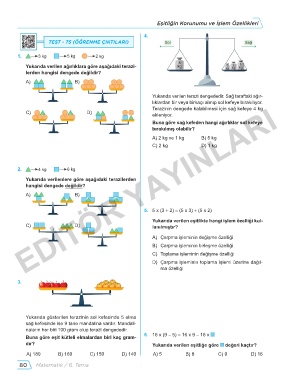 Terazinin dengede kalabilmesi için sağ kefeye 4 kg