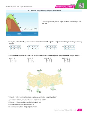 1 Buna göre yukarıdaki dağın belirtilen noktalarındaki sıcaklık değerleri aşağıdakilerin hangisinde doğru verilmiş