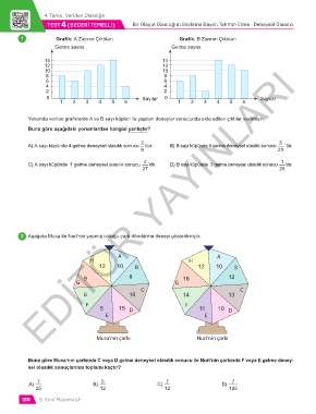 Buna göre Musa’nın çarkında C veya D gelme deneysel olasılık sonucu ile Nuri’nin çarkında F veya E gelme deney-