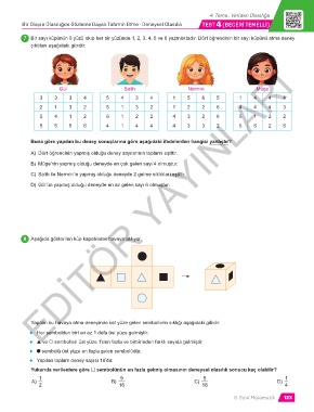 7 Bir sayı küpünün 6 yüzü olup her bir yüzünde 1, 2, 3, 4, 5 ve 6 yazmaktadır. Dört öğrencinin bir sayı küpünü atma deney