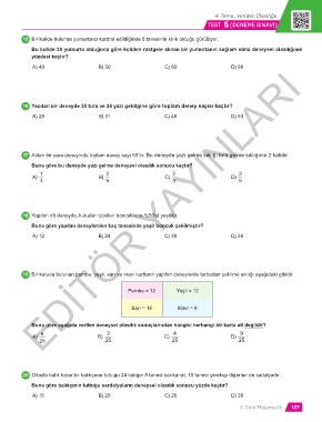 16 Yapılan bir deneyde 25 tura ve 28 yazı geldiğine göre toplam deney sayısı kaçtır?