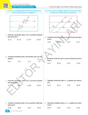 TEST 1 (BAĞLANTILI SORU) İki Paralel Doğru ve Bir Kesenle Oluşturulan Açılar