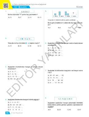 Yukarıda verilen örüntüde ■ + ▲ toplamı kaçtır? 6. Aşağıdaki örüntülerden hangisi sekiz artarak devam
