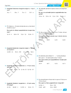 13. Aşağıdaki ifadelerden hangisinin değeri a = 4 için 3 18. “Bir aritmetik işlemde bir sayının 2 katının 25 eksiği ifade