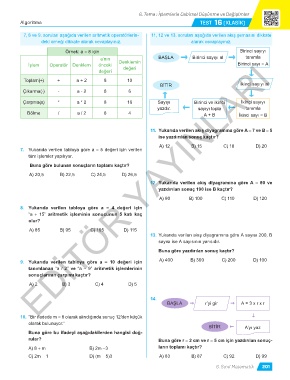 7, 8 ve 9. soruları aşağıda verilen aritmetik operatörlerin- 11, 12 ve 13. soruları aşağıda verilen akış şemasını dikkate