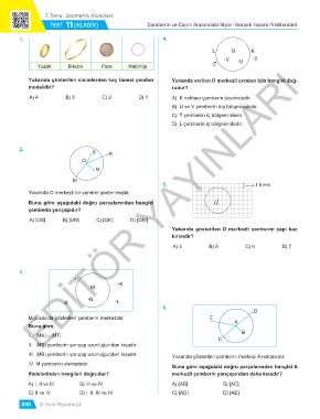Yukarıda gösterilen cisimlerden kaç tanesi çember Yukarıda verilen O merkezli çember için hangisi doğ-
