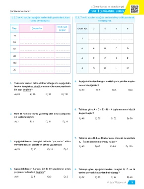 Çarpanlar ve Katlar TEST 1 (BAĞLANTILI SORU)