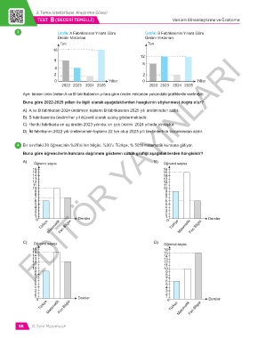 Aynı türden ürün üreten A ve B fabrikalarının yıllara göre üretim miktarları yukarıdaki grafiklerde verilmiştir.
