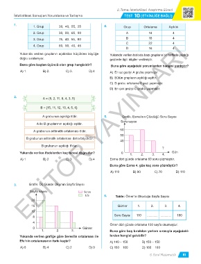 A grubunun açıklığı 8’dir. 5. Grafik: Esma’nın Çözdüğü Soru Sayısı