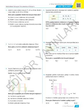 6. Ayhan’ın sınav notları sırasıyla 75, 85 ve 90’dır. Melih’in 9. Aşağıdaki tabloda iki arkadaşın dart tahtasına yaptıkları