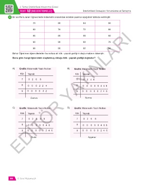 Bahar Öğretmen öğrencilerinden bu notlara ait kök - yaprak grafiğini oluşturmalarını istemiştir.