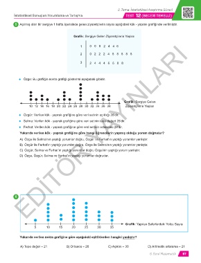 ◆ Selma: Verilen kök - yaprak grafiğine göre veri setinin tepe değeri 28’dir.
