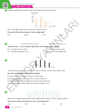 12 Aşağıdaki grafikte Salih’in girdiği 4 testten 3’ünde yaptığı doğru sayıları verilmiştir.