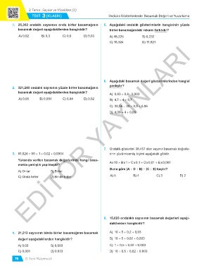1. 25,362 ondalık sayısının onda birler basamağının 5. Aşağıdaki ondalık gösterimlerin hangisinin yüzde