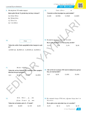 10. 8 km 14. Mustafa’nın bir karış uzunluğu 18 cm’dir.
