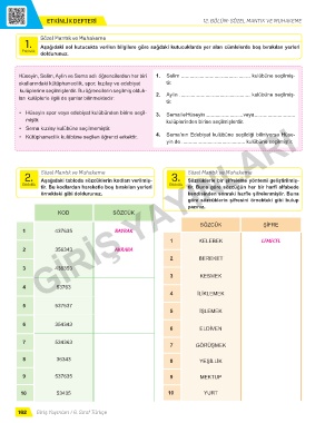 Aşağıdaki tabloda sözcüklerin kodları verilmiş-