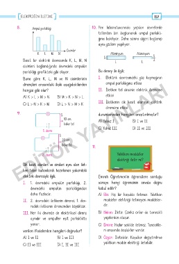 Buna göre K, L, M ve N cisimlerinin I. Elektrik devresindeki güç kaynağının