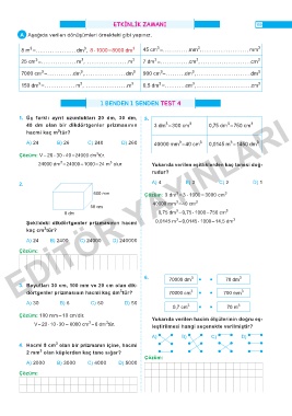 Çözüm: 100 mm = 10 cm’dir. Yukarıda verilen hacim ölçülerinin doğru eş-