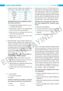 1. Aşağıdaki tabloda ülkelere göre kadınların oy 4. Orta Asya’da kurulan ilk Türk devletlerinde ka-