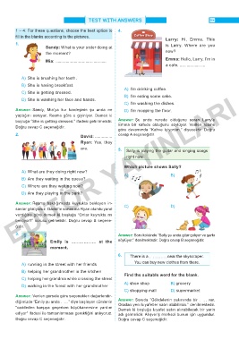 boşluğa “She is getting dressed.” ifadesi getirilmelidir. Answer: Şu anda nerede olduğunu soran Larry’e