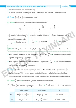 • Kesirlerle işlem sonuçları tahmin edilirken;