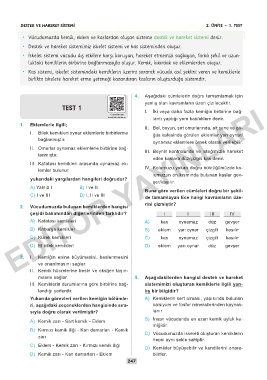 DESTEK VE HAREKET SİSTEMİ 2. ÜNİTE – 1. TEST
