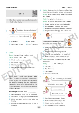 YUMMY BREAKFAST UNIT 2 – TEST 1