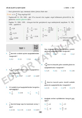 TEST 1 Sayı doğrusunda x’e karşılık gelen ondalık