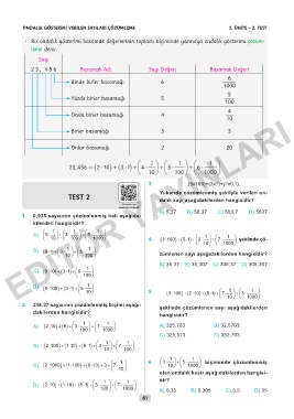 ONDALIK GÖSTERİMİ VERİLEN SAYILARI ÇÖZÜMLEME 3. ÜNİTE – 2. TEST