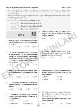 ONDALIK GÖSTERİMLERİ VERİLEN SAYILARI YUVARLAMA 3. ÜNİTE – 3. TEST