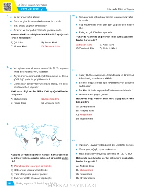 KAZANIM TESTİ 7 Dünya’da klim ve Yaam