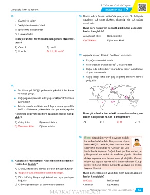 Dünya’da klim ve Yaam KAZANIM TESTİ 7