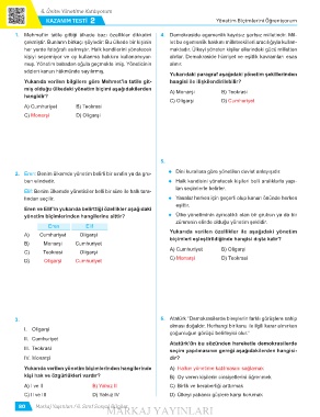 KAZANIM TESTİ 2 Yönetim Biçimlerini Öğreniyorum