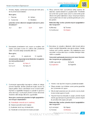 Yönetim Biçimlerini Öğreniyorum KAZANIM TESTİ 3