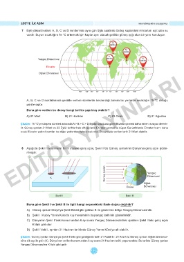 Çözüm: Güneş ışınları Dünya’ya Şekil II’deki gibi geldiğinde tarih 21 Aralık’tır. 21 Aralık’ta Güneş ışınları Oğlak Dönence-
