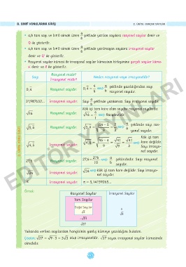 2. ÜNİTE KONU ÖZETİ 4,5 İrrasyonel sayıdır. 4,5 = 45 − 4 = 41 = 3 Kök içi tam