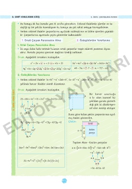 y Verilen cebirsel ifadeler çarpanlarına ayrılarak sadeleştirme ve bölme işlemleri yapılabi-