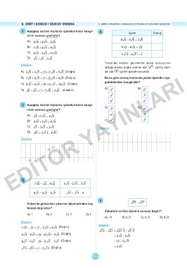 A) 35 + 2 5 = (3 2+ ) 5 = 55 (Doğru) lar için "✗" işareti işaretlenecektir.
