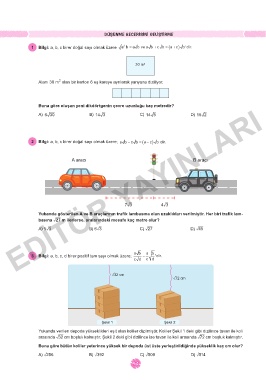 Yukarıda gösterilen A ve B araçlarının trafik lambasına olan uzaklıkları verilmiştir. Her biri trafik lam-