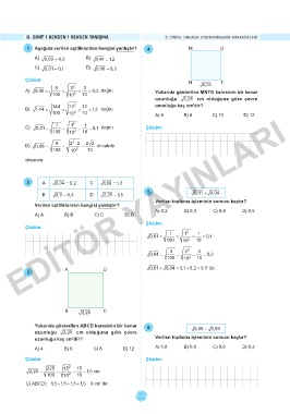 A) 0,09 = = = = 0,3 doğru Yukarıda gösterilen MNTO karesinin bir kenar