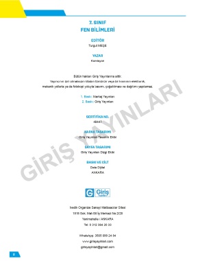 Page 2 - 7. SINIF FEN BİLİMLERİ KAZANIM TESTLERİ - GİRİŞ YAYINLARI