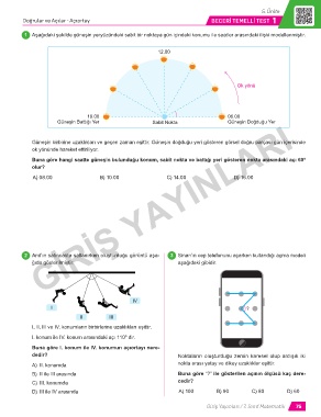 1 Aşağıdaki şekilde güneşin yeryüzündeki sabit bir noktaya gün içindeki konumu ile saatler arasındaki ilişki modellenmiştir.