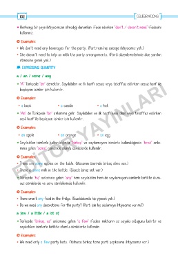* Sayılabilen isimlerle kullanıldığında “birkaç" ve sayılamayan isimlerle kullanıldığında "biraz” anla-