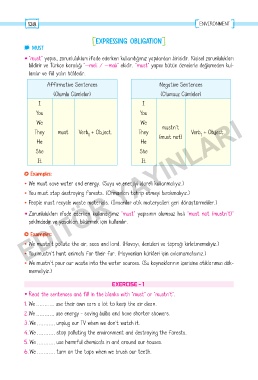 y We mustn’t pour our waste into the water sources. (Su kaynaklarının içerisine atıklarımızı dök-