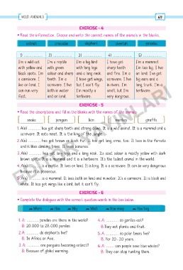 y Read the information. Choose and write the correct names of the animals in the blanks.