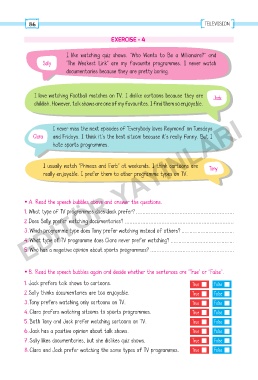 4. Clara prefers watching sitcoms to sports programmes. True False