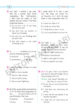 9. Last night, I watched a quiz show. 13. I usually watch TV to have a good